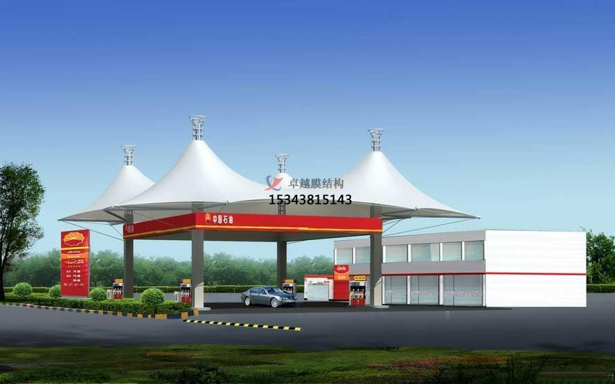 第三點,膜結構停加油站罩棚內(nèi)部采用Φ38鍍鋅圓管與加油站罩棚框架焊接,加強棚頂部強度,可讓棚內(nèi)感覺寬敞明亮,??寇囕v輕松方便,完全符合停加油站罩棚制作要求規(guī)范;