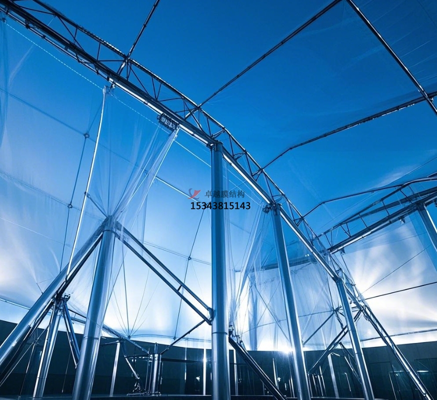充氣膜結(jié)構(gòu)則依托內(nèi)部氣壓來堅(jiān)持膜材的形狀。這種類型的膜結(jié)構(gòu)在一些臨時(shí)性的小型舞臺(tái)或?qū)臻g要求較為特別的扮演場景中運(yùn)用較為廣泛。它經(jīng)過向膜材內(nèi)部繼續(xù)充氣,使膜體膨脹構(gòu)成所需的空間形狀。例如,在某些兒童劇扮演中,為了營造出夢境、童話般的氣氛,會(huì)采用充氣膜結(jié)構(gòu)建立舞臺(tái)。充氣后的膜體出現(xiàn)出圓潤、心愛的造型,與兒童劇的主題相輔相成,而且充氣膜結(jié)構(gòu)建立速度快,可依據(jù)扮演需求快速調(diào)整空間布局,為扮演的順利進(jìn)行供給了便當(dāng)。