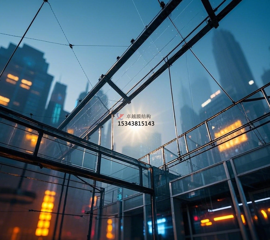 光影作用:大都膜材具有杰出的透光性,這一特性使得舞臺(tái)膜結(jié)構(gòu)在光影運(yùn)用上獨(dú)具優(yōu)勢。在白日,天然光透過膜材灑在舞臺(tái)上,構(gòu)成柔軟、均勻的光線,為扮演供給了天然、亮堂的環(huán)境,一起也能讓觀眾感受到與野外相似的氣氛。到了夜晚,經(jīng)過奇妙安置燈火,可以運(yùn)用膜材的透光性和半透明特性,創(chuàng)造出各種奇幻的光影作用。例如,在一場音樂會(huì)上,將彩色燈火投射在膜結(jié)構(gòu)舞臺(tái)上,膜材將光線散射開來,營造出五彩斑斕、如夢如幻的場景,與音樂的節(jié)奏和旋律相呼應(yīng),極大地增強(qiáng)了扮演的視覺沖擊力,為觀眾帶來一場震撼的視聽盛宴。