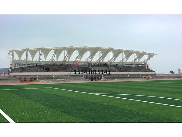 田徑場膜結構遮陽棚特點:田徑場膜結構遮陽棚具有美觀大方、耐用性強、安裝便捷、節(jié)能環(huán)保、透光性好等特點。:膜結構遮陽棚造型獨特、線條流暢,具有很強的現代感和藝術感,能夠與田徑場及周圍環(huán)境完美融合,提升場地的整體美觀度和檔次。采用了高強度、耐腐蝕的膜材,如聚四氟乙烯(PTFE)膜、聚酯滌綸(PET)薄膜等,可有效抵御紫外線、風雨等自然因素的侵蝕,使用壽命長達數十年。膜結構遮陽棚的構件在工廠預制完成后,運輸到現場進行組裝和安裝,過程相對簡單快捷,大大縮短了施工周期,減少了對田徑場正常使用的影響。其具有良好的隔熱保溫性能,能有效降低空調能耗;同時,膜材表面光滑易清潔,減少了維護工作量,且使用壽命長,降低了更換頻率及維修費用??梢宰屪匀还饩€充分照射進來,使田徑場內保持明亮,節(jié)省白天的照明能源,同時避免陽光直射導致的眩光,為運動員和觀眾提供舒適的視覺環(huán)境。