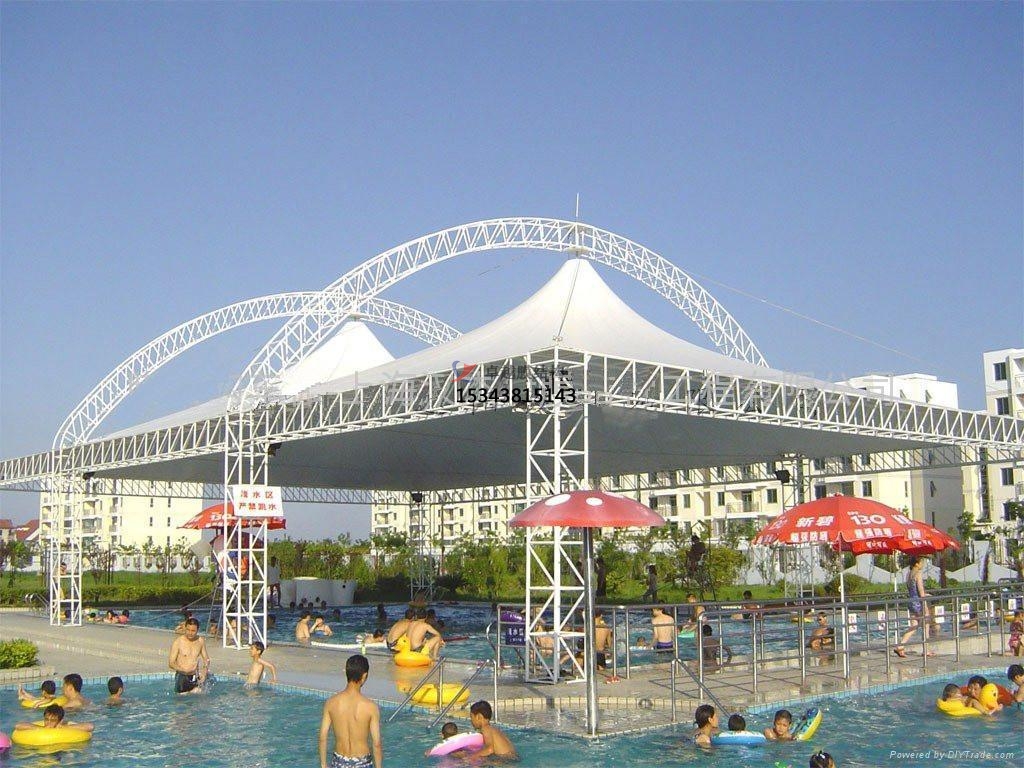 膜結(jié)構(gòu)是用高強(qiáng)度柔性薄膜材料經(jīng)受其它材料的拉壓作用而形成的穩(wěn)定曲面,能承受-定外荷載的空間結(jié)構(gòu)形式。其造型自由、輕巧、柔美,充滿力量感,阻燃、制作簡(jiǎn)易、安裝快捷、節(jié)能、易于、使用安全等優(yōu)點(diǎn),因而使它在世界各地受到廣泛應(yīng)用。
