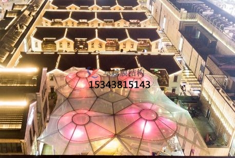 工程特點(diǎn):該項(xiàng)目是國(guó)內(nèi)好的單層ETFE加雙層氣枕膜完美嵌合的景觀雨棚建筑,利用ETFE膜材的高透光高自潔性以及雙層氣枕的隔熱能力,雨棚在具有遮陽(yáng)擋雨功能的同時(shí)還可以實(shí)現(xiàn)自然采光,行人沒有傳統(tǒng)密封建筑的束縛感;另一方面,ETFE膜結(jié)構(gòu)建筑是當(dāng)代更新的建筑應(yīng)用形式之一,工程高度定制,顏值高,具有好的性,天生自帶聚集人氣光環(huán)。