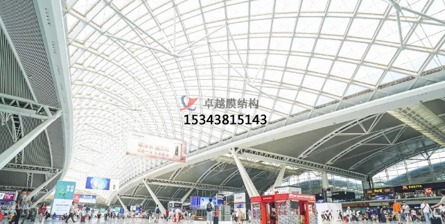 作為華南地區(qū)最繁忙的高鐵站,廣州南站的“高顏值”備受旅客喜愛~其屋頂設計獨特,除了傳統(tǒng)的采光玻璃外還使用了高分子透光膜(透明ETFE膜材).