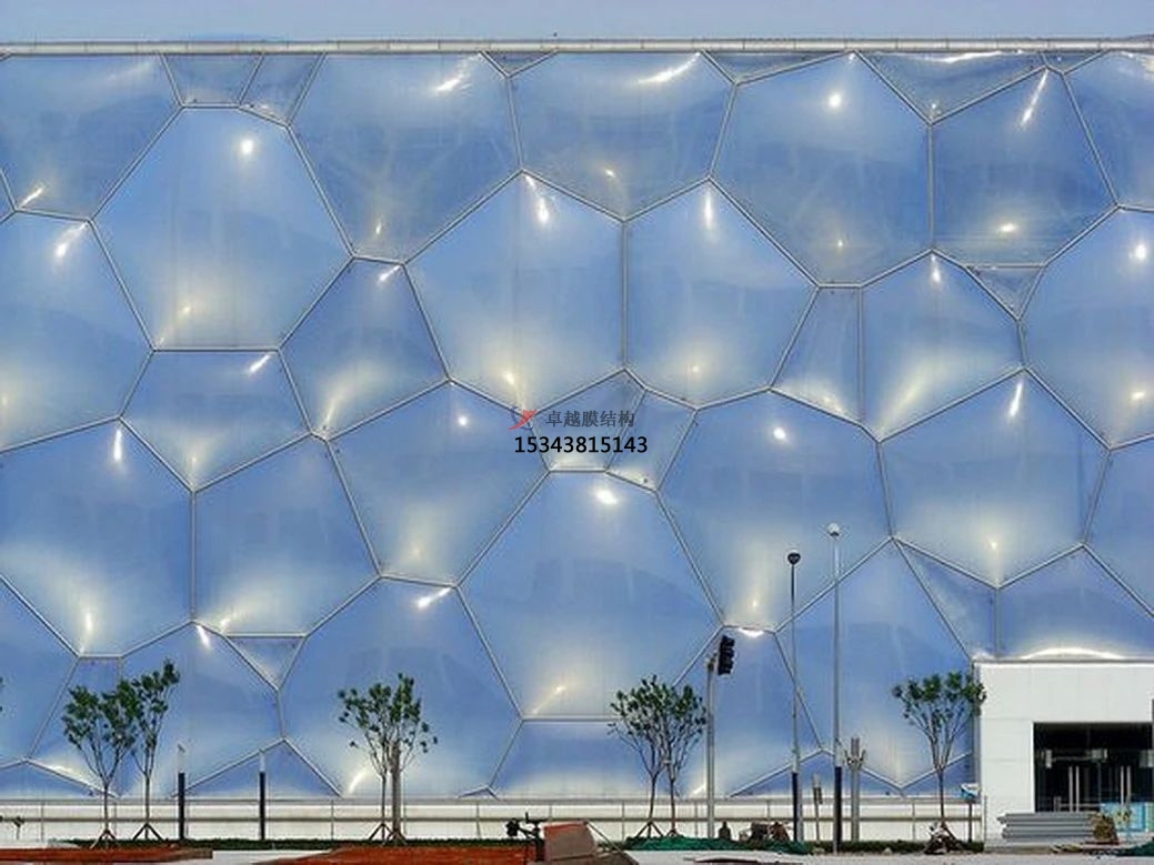骨架膜結(jié)構(gòu)的顯著特點(diǎn)在于:膜不是維持結(jié)構(gòu)體系存在的必要結(jié)構(gòu)單元,但膜又不僅僅是單純地用來覆蓋屋面體系,而是充分發(fā)揮了其建筑采光功能、高強(qiáng)度受力特性。因屋頂造型比較單純,開口部不易受限制,且經(jīng)濟(jì)效益高等特點(diǎn),廣泛適用于任何大,小規(guī)模的空間。