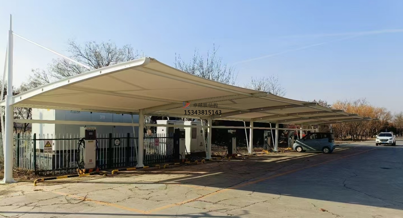 膜結(jié)構(gòu)車棚的建造成本較低,而且具有較短的施工周期,可以節(jié)省時(shí)間和費(fèi)用。