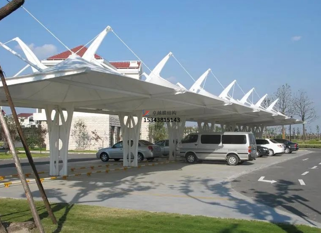 美觀大方:膜材料具有良好的透光性和折射性,使得車棚在外觀上更加美觀大方,能夠與周圍環(huán)境協(xié)調(diào)融合。
