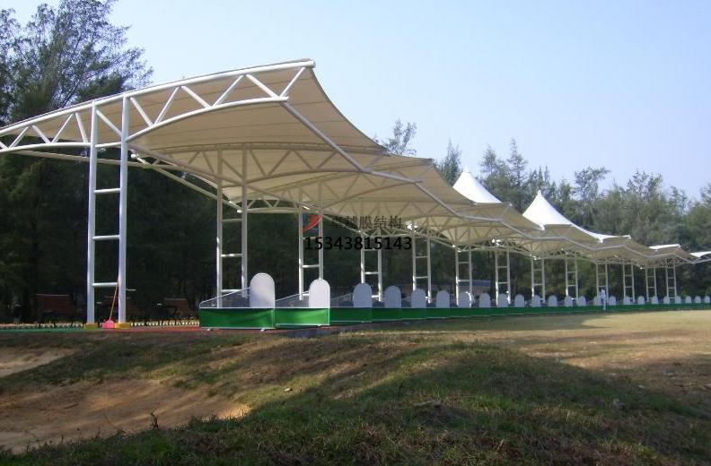 高爾夫球場綠草如茵青山環(huán)繞的整體環(huán)境,時尚又環(huán)保的配套設施才能更加提升其高貴品質(zhì)。膜結(jié)構(gòu)因適用廣,技術(shù)性及藝術(shù)性兼?zhèn)?,用來建設高爾夫球場發(fā)球臺再合適不過,潔白的膜材及獨特的造型搭配,此外,因張拉膜具有自重輕的特性,使其外表看起來輕盈簡約,讓前來運動的人們耳目一新,卸下平日工作壓力帶來的那份沉重,盡情享受身體與心靈的放松,何樂而不為呢?