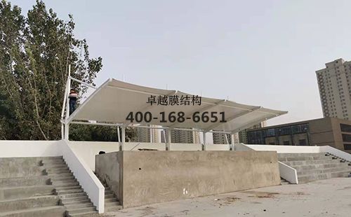 鄭州市天府路中學膜結構看臺/頂棚,膜材展開面積為120平方,工程總造價******元,膜材單價***元(保密,具體請咨詢客服,想了解價格的可以參考《膜結構價格》)