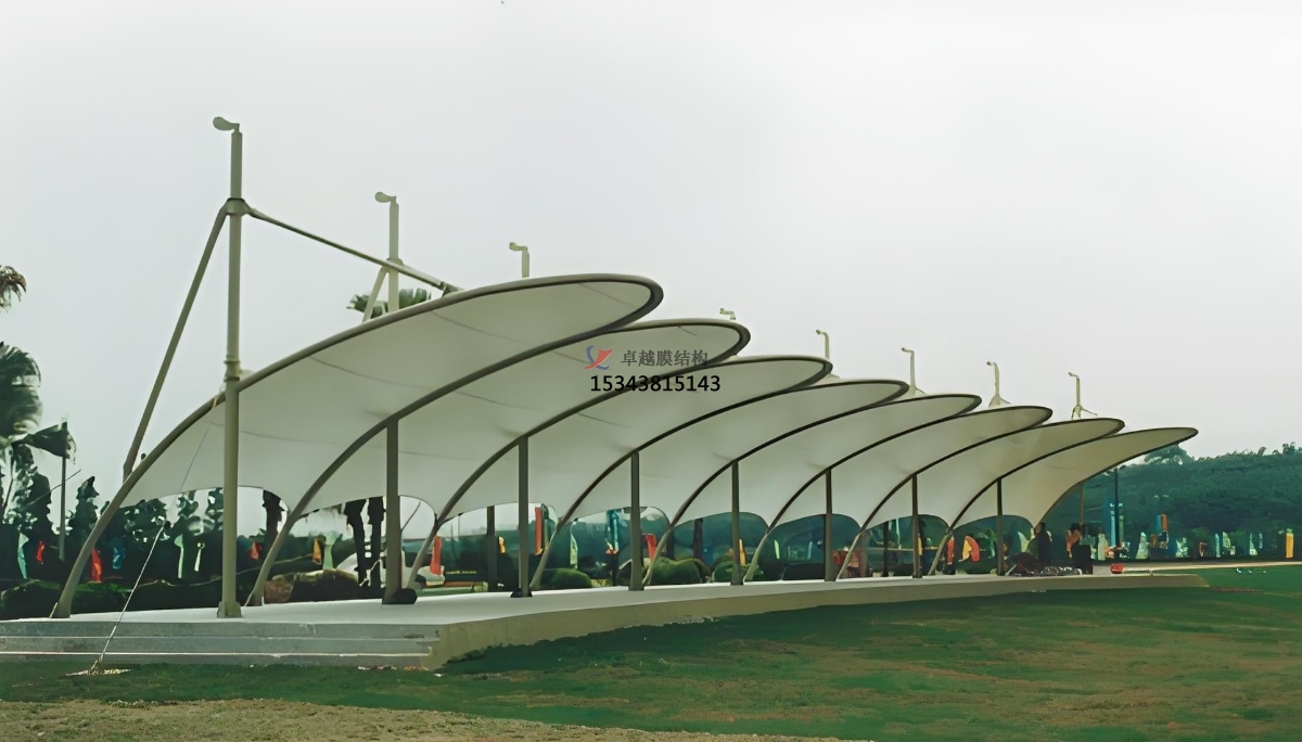 5、工期短,拆裝方便‌:膜結(jié)構(gòu)制作工期短,可調(diào)節(jié)及裝卸的節(jié)點(diǎn)形式使得移動(dòng)工程變?yōu)榭赡?,非常適合高爾夫球場(chǎng)等需要快速搭建和拆卸的場(chǎng)合。
