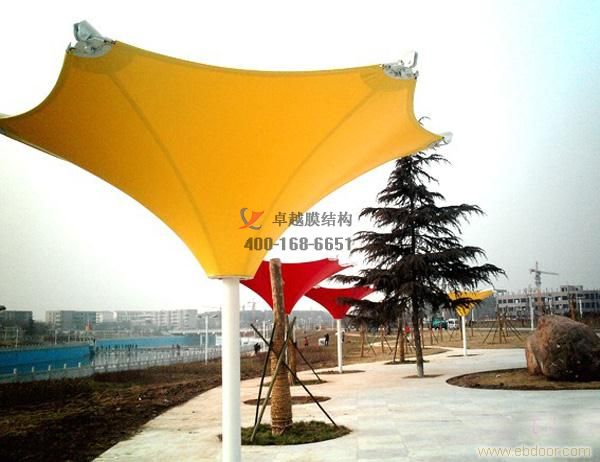6、這是我司十堰及周邊地區(qū)完工的膜結(jié)構(gòu)景觀工程案例,膜結(jié)構(gòu)景觀具有外觀新穎,經(jīng)濟適用,適用壽命長,節(jié)能透光等優(yōu)點。 其張力結(jié)構(gòu)自重小,其主要是依靠預應(yīng)力而非材料來保持形態(tài)結(jié)構(gòu)的穩(wěn)定性。所以比傳統(tǒng)的景觀設(shè)施重量輕得多,但卻具有良好的穩(wěn)定性深受廣大用戶的好評,我司所有工程全部通過專業(yè)膜結(jié)構(gòu)軟件計算通過,結(jié)構(gòu)安全,質(zhì)量可靠,歡迎來電訂購,小編期待您的咨詢,聯(lián)系電話:13101719686。