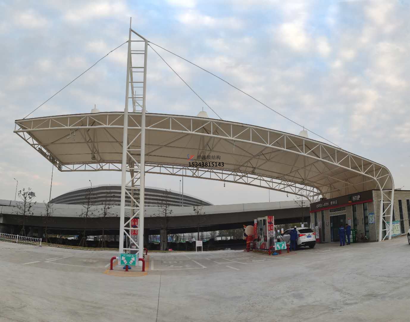 加油站膜結構,一般是指安裝在加油站的膜結構頂棚。膜結構頂棚因其自重輕,具有良好的受力特點,所以成為大跨度空間結構的主要形式之一,加油站膜結構也屬于其范疇。