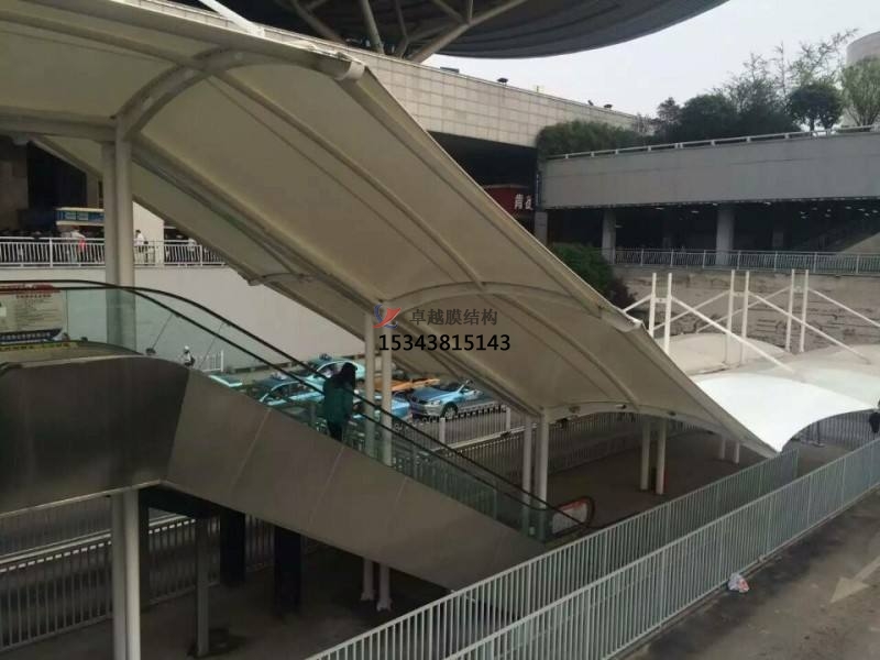 地鐵入口使城市公共空間與建筑空間相鄰的界面,成為城市空間的組成部分它是人們視覺更先接觸的部分,因此,除了功能以外,還應(yīng)有很強的標識性,并能體現(xiàn)建筑的個性,是建筑環(huán)境和城市景觀的重要組成部分。由于膜結(jié)構(gòu)獨特的造型是其他結(jié)構(gòu)類型無法比擬的,故成為近來建筑入口經(jīng)常采用的形式。