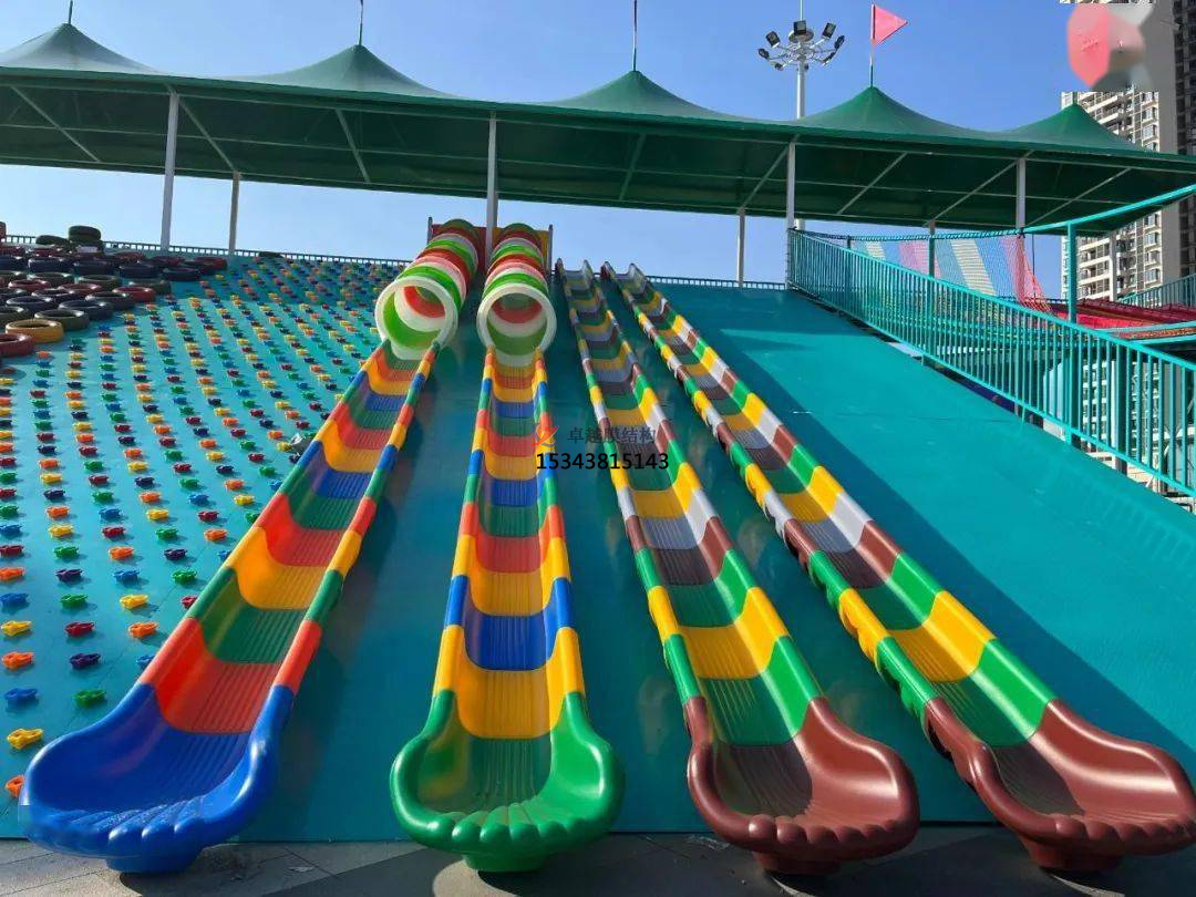 水上樂(lè)園:水上樂(lè)園中的一些設(shè)施也可以使用彩色膜結(jié)構(gòu)。例如,水上滑梯的滑道可以采用膜材料制成,為游客提供一種獨(dú)特的滑行體驗(yàn)。