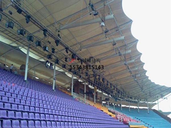 由于膜材的光透性,白天陽(yáng)光可以透過(guò)膜材形成慢射光,使室內(nèi)達(dá)到和室外幾乎一樣的自然效果,因此膜結(jié)構(gòu)能創(chuàng)造出與自然環(huán)境相媲美的空間形式。體育場(chǎng)看臺(tái)采用膜結(jié)構(gòu)的設(shè)計(jì),膜結(jié)構(gòu)的張拉樣式無(wú)形當(dāng)中增大了空間跨度,輕輕松松的將整個(gè)的看臺(tái)處被覆蓋,在簡(jiǎn)化了建筑結(jié)構(gòu)的同時(shí)建筑重量也輕松很多,讓施工更簡(jiǎn)便,還降低了施工工人的危險(xiǎn)系數(shù),縮短了工程的建造工期。