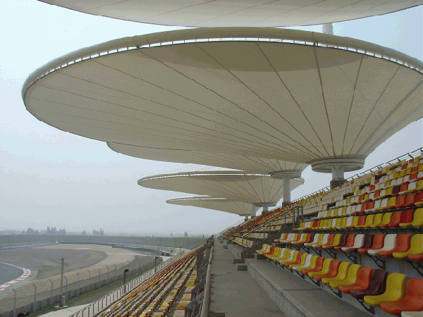 三、膜構(gòu)造的裝置宜在風(fēng)力不大于四級的情況下進(jìn)行。在裝置過程中應(yīng)充沛留意風(fēng)速和風(fēng)向,避免發(fā)作額抖景象。-起應(yīng)依據(jù)降雨的程度決議工程的間斷和持續(xù)。
