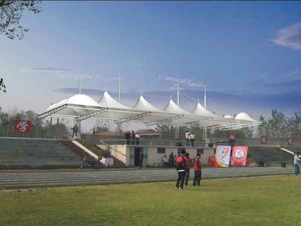 目前在我國普遍應用膜結(jié)構(gòu)體育場看臺。膜結(jié)構(gòu)建筑能很好的覆蓋整個看臺,膜結(jié)構(gòu)的張拉樣式使得建筑的空間跨度變大,同時建筑的整體重量減輕,使施工更輕松安全。這些也是人們選用膜結(jié)構(gòu)的重要理由。膜材的表面都有涂層,可以防止灰塵雨水的侵蝕,起到保護建筑并提高使用年限的作用。