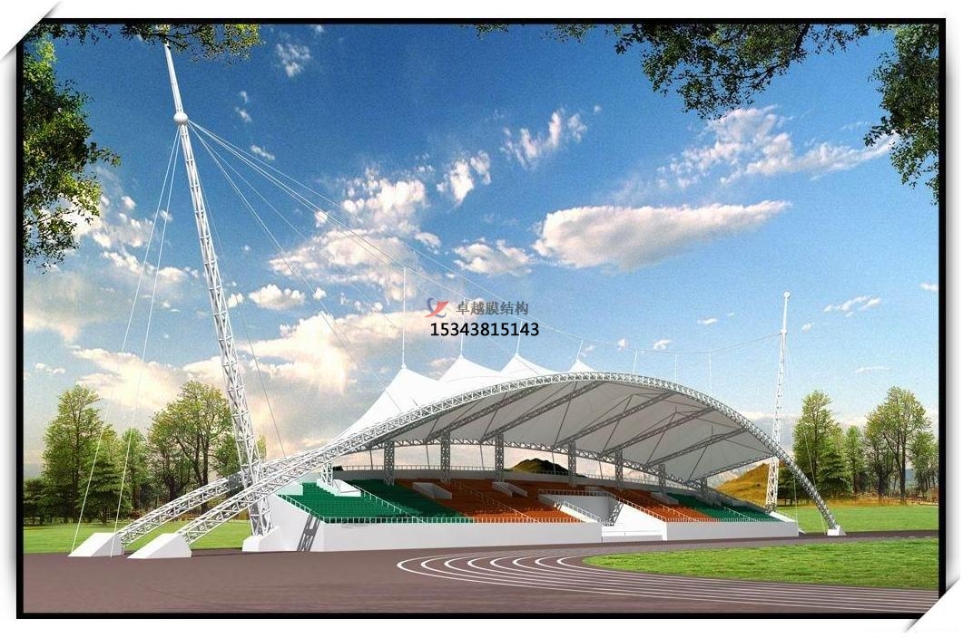看臺膜結(jié)構(gòu)的應(yīng)用場景較為廣泛,常見于體育場館、學(xué)校看臺和景觀融合中。體育場館如德國慕尼黑安聯(lián)競技場(Allianz Arena)以ETFE膜營造動態(tài)光影效果,卡塔爾體育場結(jié)合鋼索桅桿實(shí)現(xiàn)無柱大空間;學(xué)??磁_如內(nèi)蒙古科爾沁左翼后旗實(shí)驗(yàn)學(xué)校、咸陽中學(xué)等項(xiàng)目采用膜結(jié)構(gòu)遮陽棚,兼顧耐久性與審美需求;景觀融合如泰安汶河景區(qū)船帆膜結(jié)構(gòu)、鄂爾多斯西山公園張拉膜,將功能性與自然景觀有機(jī)統(tǒng)一。膜結(jié)構(gòu)看臺通過材料創(chuàng)新與精密工程,實(shí)現(xiàn)了功能、美學(xué)與經(jīng)濟(jì)的平衡,正逐步成為現(xiàn)代體育及公共設(shè)施的主流選擇。