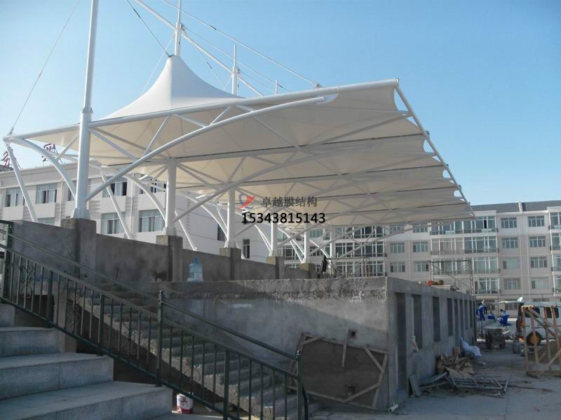 張拉膜看臺(tái)主要用于各類地方體育場(chǎng)主席臺(tái)雨棚,各類學(xué)校體育場(chǎng)看臺(tái)雨棚遮蓋,我公司是國內(nèi)較早從事大懸挑張拉膜結(jié)構(gòu)看臺(tái)設(shè)計(jì)施工的專業(yè)廠家,下面介紹一下我們?cè)谖錆h周邊縣市完工的一些張拉膜看臺(tái)設(shè)計(jì)施工案例,我公司先后在武漢周邊承接了武漢外國語學(xué)校看臺(tái)雨棚、武漢市建設(shè)學(xué)校張拉膜張拉膜看臺(tái)罩棚、武漢楓葉國際學(xué)校張拉膜看臺(tái)遮陽棚張拉膜看臺(tái)遮陽棚等設(shè)計(jì)施工項(xiàng)目,簡介如下: