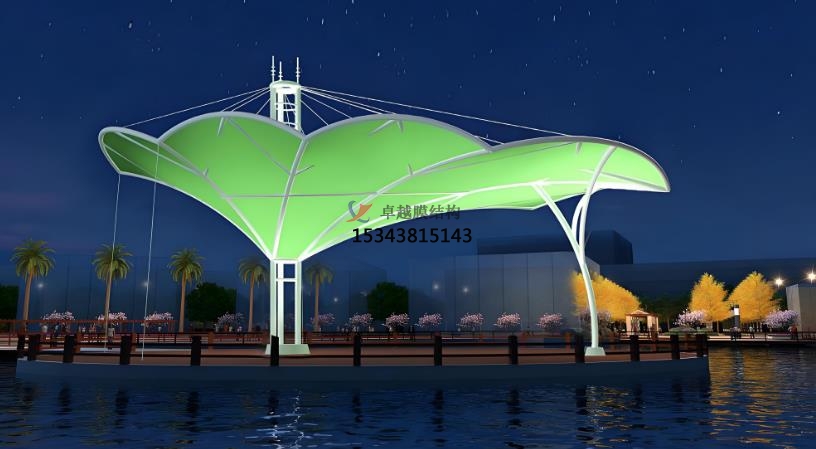 張拉膜景觀的應(yīng)用場景:商業(yè)空間,文化設(shè)施,運動場地,旅游景點。在商業(yè)空間中,如購物中心、商業(yè)廣場的入口、中庭等,可吸引顧客目光,提升商業(yè)氛圍。在文化設(shè)施中博物館圖書館等文化場所,可營造開放、溫馨的室內(nèi)環(huán)境,增添文化藝術(shù)氣息。在運動場地中足球場、籃球場等運動場館的屋頂或看臺,實現(xiàn)大跨度覆蓋,為觀眾和運動員提供良好的空間環(huán)境。在旅游景點景區(qū)大門、游客服務(wù)中心、觀景臺等,可彰顯地域特色,為游客提供遮陽避雨的空間。張拉膜景觀材料可在工廠預(yù)制,現(xiàn)場安裝快速高效,大大縮短施工周期。這種結(jié)構(gòu)通常采用預(yù)應(yīng)力拉索體系,利用邊鎖的拉力和膜材的形狀構(gòu)成造型,盡可能減少結(jié)構(gòu)體型對膜材視覺的影響常用彩色膜材以體現(xiàn)其千變?nèi)f化的浪漫情懷。其靈活的設(shè)計和組合方式,使其能夠適應(yīng)各種復(fù)雜的地形和環(huán)境。張拉膜景觀在設(shè)計中,會充分結(jié)合當(dāng)?shù)氐臍夂?、景觀和文化背景,使其不僅具有功能性,還能成為地域文化的象征,提升旅游地區(qū)的品質(zhì)形象。此外,張拉膜材料本身具有顯色性,在夜間彩燈的映射下能形成絢麗繽紛的景觀效果,為人們帶來時尚、輕松的休閑感受‌。