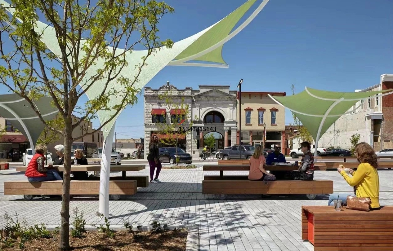 景觀膜結構的核心在于其采用的薄膜材料。這些材料具有高強度、輕質、透光性好、耐候性強等顯著特點,使得膜結構建筑能夠展現(xiàn)出輕盈靈動的姿態(tài),與自然環(huán)境和諧共生1。通過精細的裁剪、焊接和涂裝等工藝流程,設計師們將這些薄膜材料轉化為一道道亮麗的風景線,為城市空間增添了無限的藝術氣息。