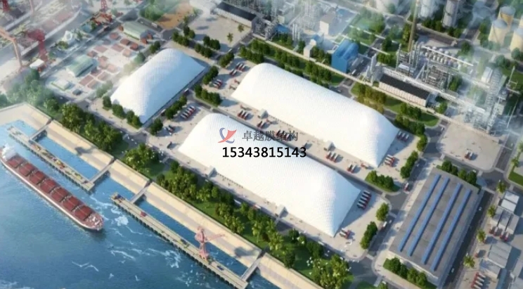 目前我國(guó)年吞吐量在1000萬(wàn)噸以上的沿海港口和200萬(wàn)噸以上的內(nèi)河港口占全國(guó)港口的1/3。而港口發(fā)展中所用到的煤炭、物料、煤矸石、煤堆、水泥白灰等生產(chǎn)原料造成的揚(yáng)塵污染,給當(dāng)?shù)厣鷳B(tài)及居住環(huán)境造成了嚴(yán)重破壞。而全封閉氣膜倉(cāng)儲(chǔ)結(jié)構(gòu)在港口碼頭堆場(chǎng)中的應(yīng)用,不但能有效幫助港口企業(yè)實(shí)現(xiàn)環(huán)保與經(jīng)濟(jì)并存的雙贏局面,還將促成我國(guó)港口形成綠色生態(tài)新發(fā)展格局。