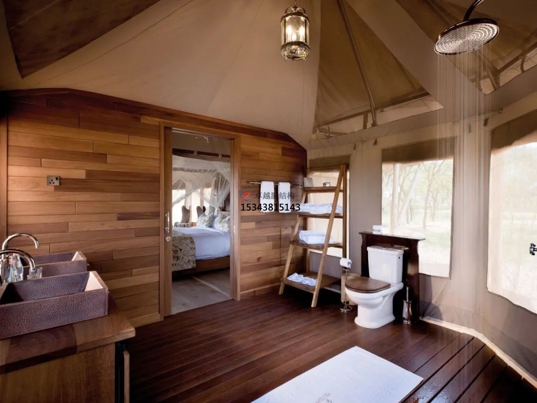 體現(xiàn)在采用張拉膜結(jié)構(gòu)的接待中心、住宿單元等,甚至于可以設(shè)計(jì)帳篷連廊,連接接待中心和住宿單元以及部分特殊的休憩空間。
