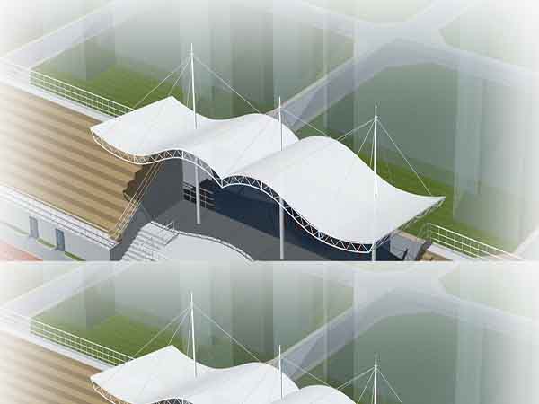 張拉膜看臺主要用于各類地方體育場主席臺雨棚,各類學校體育場看臺雨棚遮蓋,我公司是國內(nèi)較早從事大懸挑張拉膜結構看臺設計施工的專業(yè)廠家,下面介紹一下我們在萍鄉(xiāng)市周邊縣市完工的一些張拉膜看臺設計施工案例,我公司先后在萍鄉(xiāng)周邊承接了萍鄉(xiāng)學院張拉膜看臺雨棚、江西工業(yè)工程職業(yè)技術學院張拉膜看臺罩棚、江西應用工程職業(yè)學院張拉膜看臺遮陽棚等設計施工項目,簡介如下: