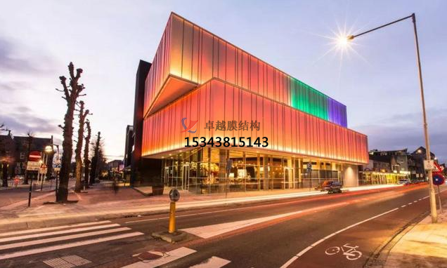 膜結構和膜結構幕墻的發(fā)展依賴于膜村的技術革命和技術發(fā)展,從歷史上來看,材料技術的革命為建筑學帶來越來越多的創(chuàng)意,也帶來無窮無盡的高要求。從現代主義到后現代主義,再到解構主義建筑理論,甚至所謂混沌理論,無不例外地要求材料革命,而每次材料革命又給建筑學添上更多的新創(chuàng)作語匯。從建筑色彩學來看,透過建筑立面的顏色或本色看室內的顏色,從亮到暗或從暗到亮,建筑師可根據層次深淺布局,色彩的冷暖安排,晝夜光源方向的異同,獲得自己想得到的建筑光學色彩效果。