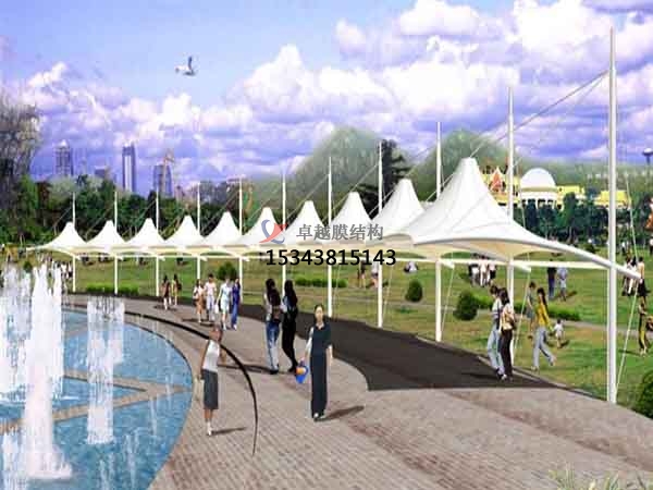 膜材料可濾除大部分紫外線,防止內(nèi)部物品褪色。其對(duì)自然光的透射率可達(dá)25%,透射光在結(jié)構(gòu)內(nèi)部產(chǎn)生均勻的漫射光,無陰影,無眩光,具有良好的顯色性,夜晚在周圍環(huán)境光和內(nèi)部照明的共同作用下,膜結(jié)構(gòu)表面發(fā)出自然柔和的光輝,令人陶醉。PTFE膜材和經(jīng)過特殊表面處理的PVC膜材具有很好的自潔性能,雨水會(huì)在其表面聚成水珠流下,使膜材表面得到自然清洗。一般膜結(jié)構(gòu)對(duì)于低于60Hz的低頻幾乎是透明的,對(duì)有特殊吸音要求的結(jié)構(gòu)可以采用具有FABRASORB裝置的膜結(jié)構(gòu),這種組合比玻璃具有更強(qiáng)的吸音效果。單層膜材料的保溫性能與磚墻相同,優(yōu)于玻璃。同其他材料的建筑一樣,膜建筑內(nèi)部也可以采用其他方式調(diào)節(jié)其內(nèi)部溫度。例如:內(nèi)部加掛保溫層,運(yùn)用空調(diào)采暖設(shè)備等。