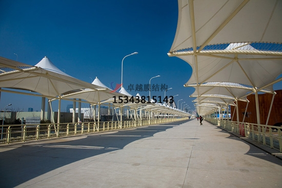 四、根據(jù)膜材料的有效使用年限應(yīng)及時進(jìn)行替換,膜結(jié)構(gòu)建筑物(building)的全部檢修維護(hù)項目應(yīng)包括膜面的形狀、變形、初期張力(解釋:物體受到拉力作用時的相互牽引力)狀態(tài)、全部或局部(part)的褶皺、破裂和斷裂(fracture)。膜結(jié)構(gòu)價格膜材料具有一定的透光率,白天可減少照明強(qiáng)度和時間,節(jié)約能源;夜間彩燈透射可形成絢爛的景觀。而且,膜結(jié)構(gòu)能夠拆卸,易于搬遷,特別是在建造短期應(yīng)用的大跨度建筑時,更為經(jīng)濟(jì)。膜結(jié)構(gòu)停車棚膜建筑中采用具有防護(hù)涂層的膜材,本身不發(fā)黏,落到膜材表面的灰塵可以靠雨水的自然沖洗而達(dá)到良好的自潔效果,同時保證建筑的使用壽命。從氣候條件看,膜結(jié)構(gòu)建筑適用的地域廣闊。