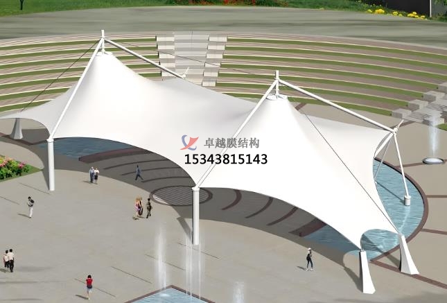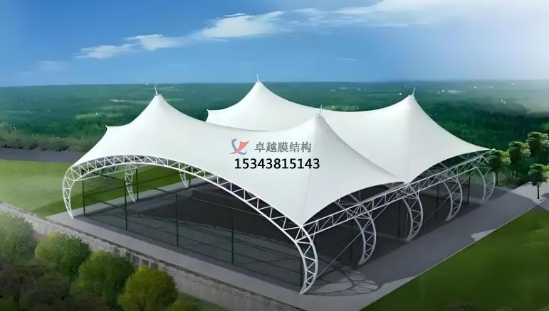 三 膜結(jié)構(gòu)雨棚的應(yīng)用領(lǐng)域:商業(yè)領(lǐng)域,交通領(lǐng)域,體育領(lǐng)域,景觀領(lǐng)域。商業(yè)領(lǐng)域,商場(chǎng)、購(gòu)物中心、商業(yè)街等的入口、廣場(chǎng)、停車(chē)場(chǎng)等位置,可提供遮陽(yáng)避雨的空間,同時(shí)增加空間利用率,其新穎的造型設(shè)計(jì)成為景觀亮點(diǎn)可吸引顧客,提升商業(yè)氛圍。交通領(lǐng)域,在機(jī)場(chǎng)、火車(chē)站的候車(chē)廳,高速公路服務(wù)區(qū)、收費(fèi)站、公交站臺(tái)等地方,能為旅客提供舒適的候車(chē)環(huán)境。體育領(lǐng)域,大型體育館以及體育看臺(tái)常采用膜結(jié)構(gòu)雨棚,其大跨度特性可滿(mǎn)足視野寬闊無(wú)結(jié)構(gòu)遮擋的要求,且膜材透光性可使白天室內(nèi)達(dá)到和室外幾乎一樣的自然效果,體育館、體育場(chǎng)、游泳館等體育場(chǎng)館的入口、看臺(tái)、休息區(qū)等,可保護(hù)觀眾和運(yùn)動(dòng)員免受風(fēng)雨侵襲,增強(qiáng)場(chǎng)館的整體美觀度。景觀領(lǐng)域,公園、廣場(chǎng)、花園、景區(qū)等地方,作為景觀小品或休息設(shè)施,為人們提供休息、觀賞的空間,與自然環(huán)境相融合,增添景觀的現(xiàn)代感,膜結(jié)構(gòu)雨棚與周?chē)h(huán)境融為一體可創(chuàng)造出浪漫溫馨的空間,在夜間彩燈映射下形成絢麗繽紛的景觀。工業(yè)領(lǐng)域,膜結(jié)構(gòu)廠房具有結(jié)構(gòu)輕便、抗震性好等特點(diǎn),廣泛應(yīng)用于各類(lèi)工廠,也可用于一些倉(cāng)庫(kù)、污水處理設(shè)施等的覆蓋。