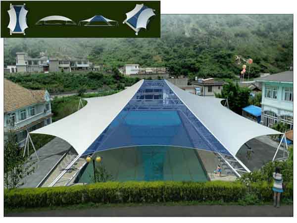 氣膜游泳館使用的膜材都是由聚酯纖維和多層涂層復合而成,符合歐美及中國環(huán)保標準,是一種具有強度,柔韌性好的薄膜材料;在力學上織物基材具有抗拉強度,抗撕裂強度,耐熱性,耐久性,防火性;涂層材具有耐候性,防污性,加工性,耐水性,耐品,透光性