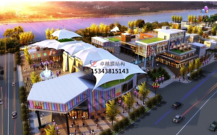 商業(yè)街膜結構概念以及有何特點?商業(yè)膜結構顧名思義是膜結構應用于商業(yè)中心的一種建筑,其實生活中我們可能已經(jīng)看到了,僅僅是因為對這種建筑不太了解,所以不認識而已。商業(yè)街是人流聚集的一個主要場所。采用東西方向排列,以入口為中軸對稱布局,建筑立面多采用塔樓,騎樓,雨罩的元素使空間產(chǎn)生新的劃分,室內(nèi)空間既設置了集中商業(yè),又有零散店鋪,是西方現(xiàn)代MALL與中國傳統(tǒng)商鋪的有機組合。