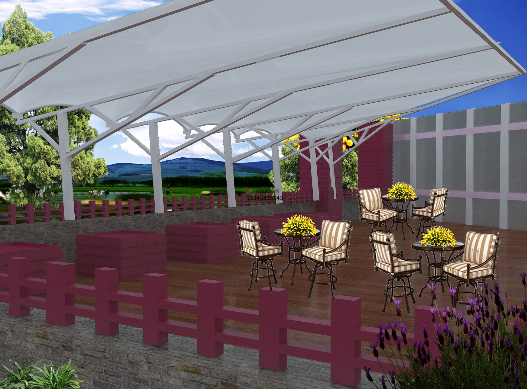 膜結(jié)構(gòu)景觀棚有何特點(diǎn)呢?一般來(lái)說(shuō)膜結(jié)構(gòu)景觀棚表面的材料是防紫外線的。了解過(guò)都知道膜結(jié)構(gòu)建筑是二十一世紀(jì)更具代表性與充滿前途的建筑形式。膜結(jié)構(gòu)建筑打破了純直線建筑風(fēng)格的模式,以其獨(dú)有的優(yōu)美曲面造型,簡(jiǎn)潔、明快、剛與柔、力與美的完美組合,呈現(xiàn)給人以耳目一新的感覺,同時(shí)給建筑設(shè)計(jì)師提供了更大的想象和創(chuàng)造空間。