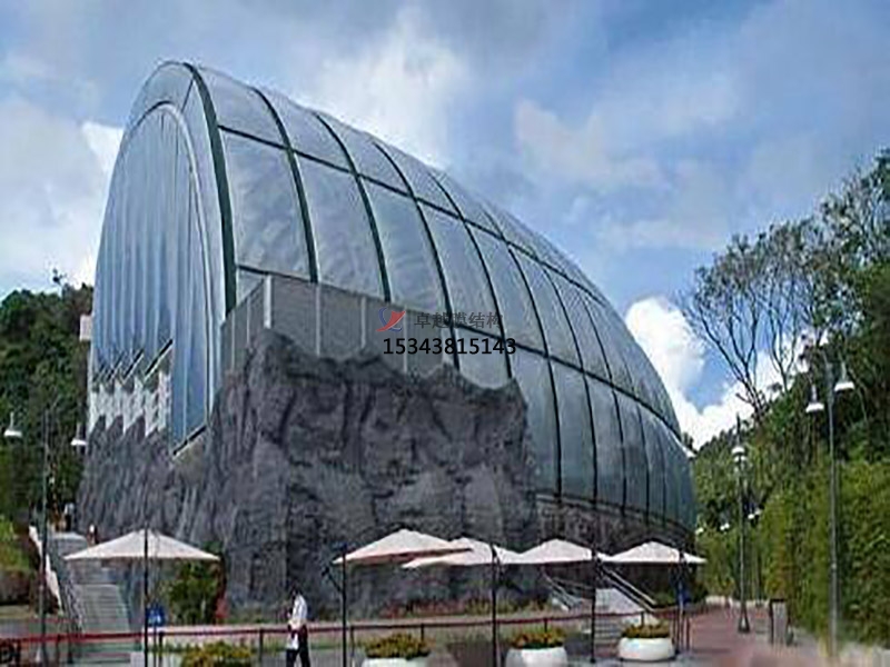 從客觀上是來看,膜結(jié)構(gòu)展覽館是與其他得展覽館得建筑是*大的不同就是在外形上是擯除了單一的直線線條,是增加了弧形得線條,而這一弧形線條的實現(xiàn)是得益于膜結(jié)構(gòu)是所采用的具有張拉性質(zhì)的膜材料,PTFE膜材料是在極細的玻璃纖維編織成的基布上是涂上了PTFE(聚四氟乙烯)樹脂而形成的復合材料。