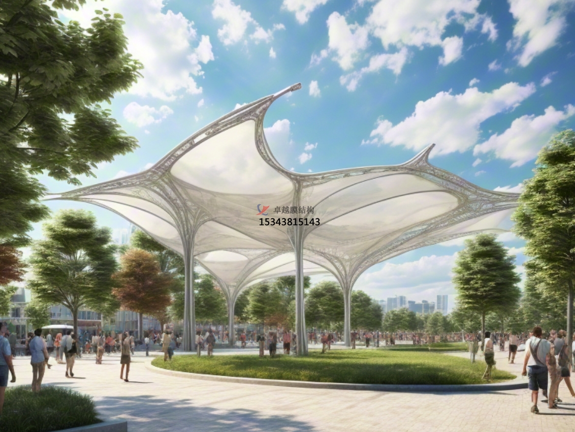 在當(dāng)代城市規(guī)劃與景觀設(shè)計(jì)中,膜結(jié)構(gòu)作為一種創(chuàng)新且充滿藝術(shù)感的建筑形式,正逐漸成為廣場(chǎng)和公園等公共空間的新寵。這種結(jié)構(gòu)以其獨(dú)特的形態(tài)、輕盈的質(zhì)感以及出色的環(huán)境融合性,為城市空間帶來(lái)了前所未有的視覺體驗(yàn)和功能提升。