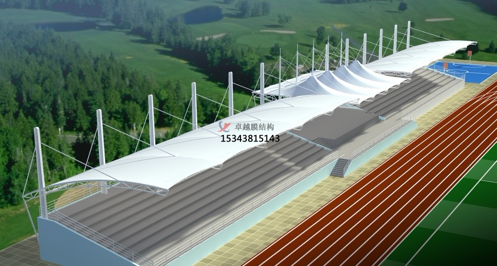 張拉膜看臺主要用于各類地方體育場主席臺雨棚,各類學(xué)校體育場看臺雨棚遮蓋,我公司是國內(nèi)較早從事大懸挑張拉膜結(jié)構(gòu)看臺設(shè)計施工的專業(yè)廠家,下面介紹一下我們在桐柏縣周邊縣市完工的一些張拉膜看臺設(shè)計施工案例,我公司先后在桐柏縣周邊承接了桐柏縣第高級中學(xué)膜結(jié)構(gòu)看臺雨篷/主席臺/舞臺安裝雨棚、桐柏縣第初級中學(xué)張拉膜張拉膜看臺罩棚、桐柏縣方樹泉中學(xué)校等設(shè)計施工項(xiàng)目,簡介如下: