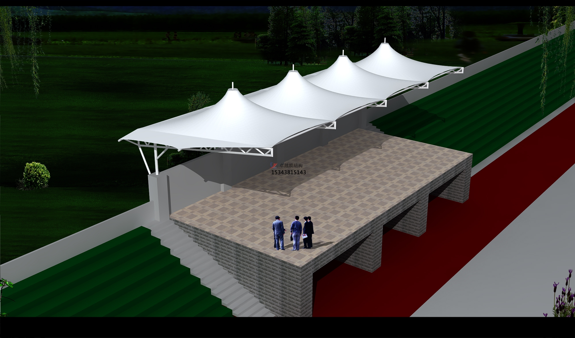 結構形式:骨架式張拉膜車棚