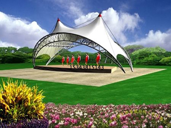 膜結(jié)構(gòu)舞臺(tái)工程能供給五顏六色的用處,并與園林景觀、公園景觀溶為一體,發(fā)明出讓人們盡情享用的快樂空間,充分展示了景觀膜結(jié)構(gòu)構(gòu)件明晰受力的藝術(shù)之美,它美妙的整合了周圍的環(huán)境,帶給人們一種顯貴典雅、浪漫溫馨之感。其他因?yàn)槟げ牧媳旧硖赜械娘@色性,在夜間彩燈的映射下能構(gòu)成美麗的景觀。 不只給人們供給遮陽避雨的空間,也因?yàn)檫@種生動(dòng)活潑的造型能給人們帶來時(shí)尚、精約的休閑感觸,所以廣受群眾歡迎。