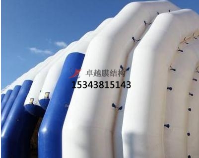 充氣膜體育館是用特殊的建筑膜材做外殼,配備一套智能化的機(jī)電設(shè)備在氣膜建筑內(nèi)部提供空氣的正壓,把建筑主體支撐起來(lái)的一種建筑結(jié)構(gòu)系統(tǒng)。