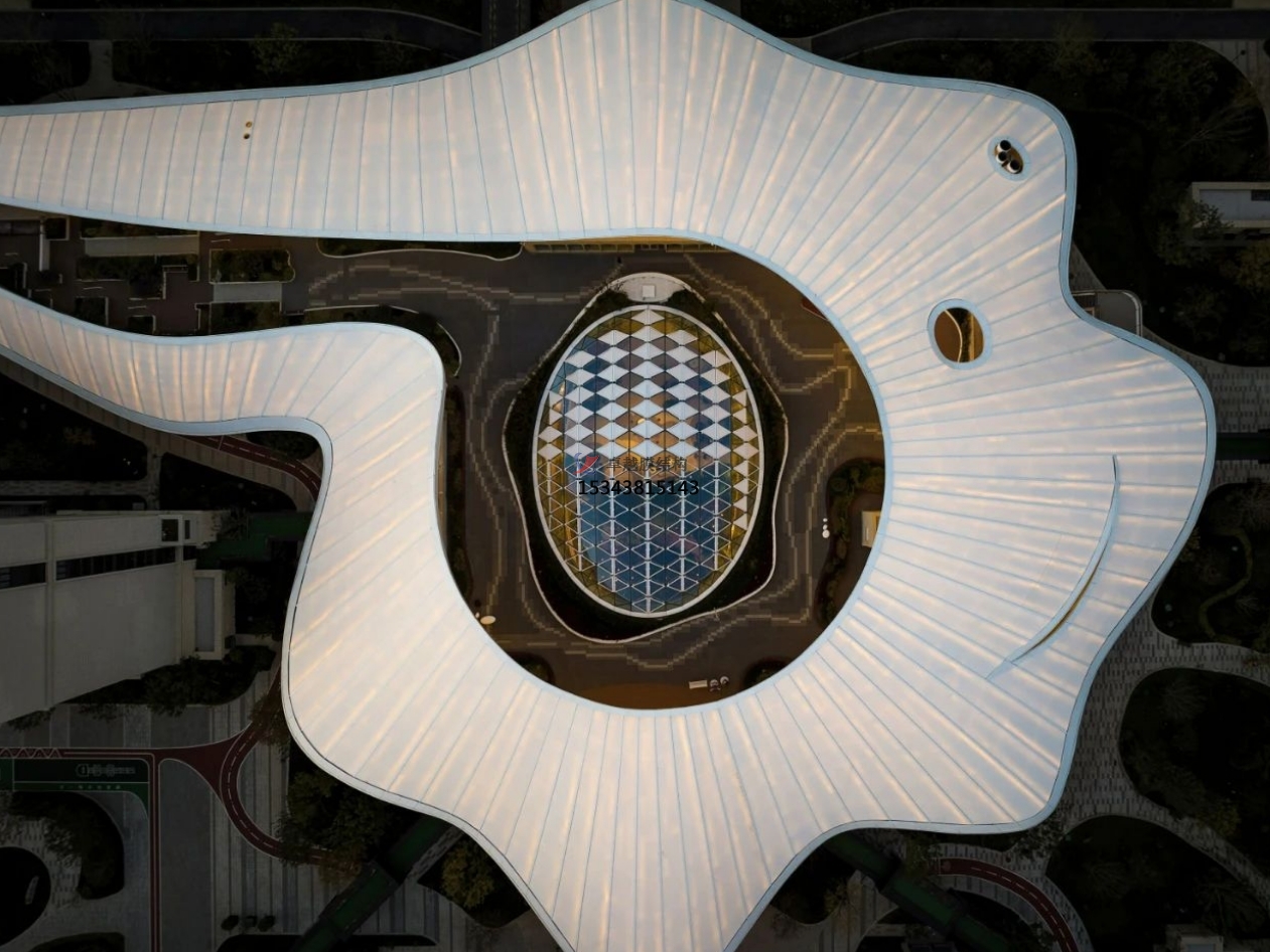 活力中心建筑屋頂是曲面膜屋面(中間高并向四周逐漸降低),選用法拉利進(jìn)口PTFE膜材,猶如漂浮的云朵將建筑體輕輕覆蓋。