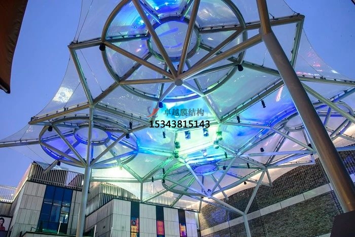 不同于傳統(tǒng)的景觀建筑,膜結(jié)構(gòu)景觀依靠高強(qiáng)度柔性膜材與剛性張拉體系相結(jié)合,形成的具有強(qiáng)烈景觀造型的空間結(jié)構(gòu)體,夜間配合燈光,會(huì)呈現(xiàn)出無與倫比的夢(mèng)幻效果。給人耳目一新的感覺,所以相比普通的景觀建筑結(jié)構(gòu)而言,更能給人們提供良好的視覺體驗(yàn)和感官體驗(yàn)。