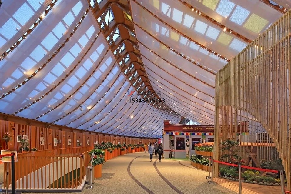張拉膜結(jié)構(gòu)遮陽棚能夠遮擋陽光中的紫外線,減少商業(yè)街區(qū)的陽光直射,改善商業(yè)街區(qū)的環(huán)境。同時,膜結(jié)構(gòu)遮陽棚的透光性能較好,不影響商業(yè)街區(qū)的采光,為行人提供一個舒適、自然的購物環(huán)境。