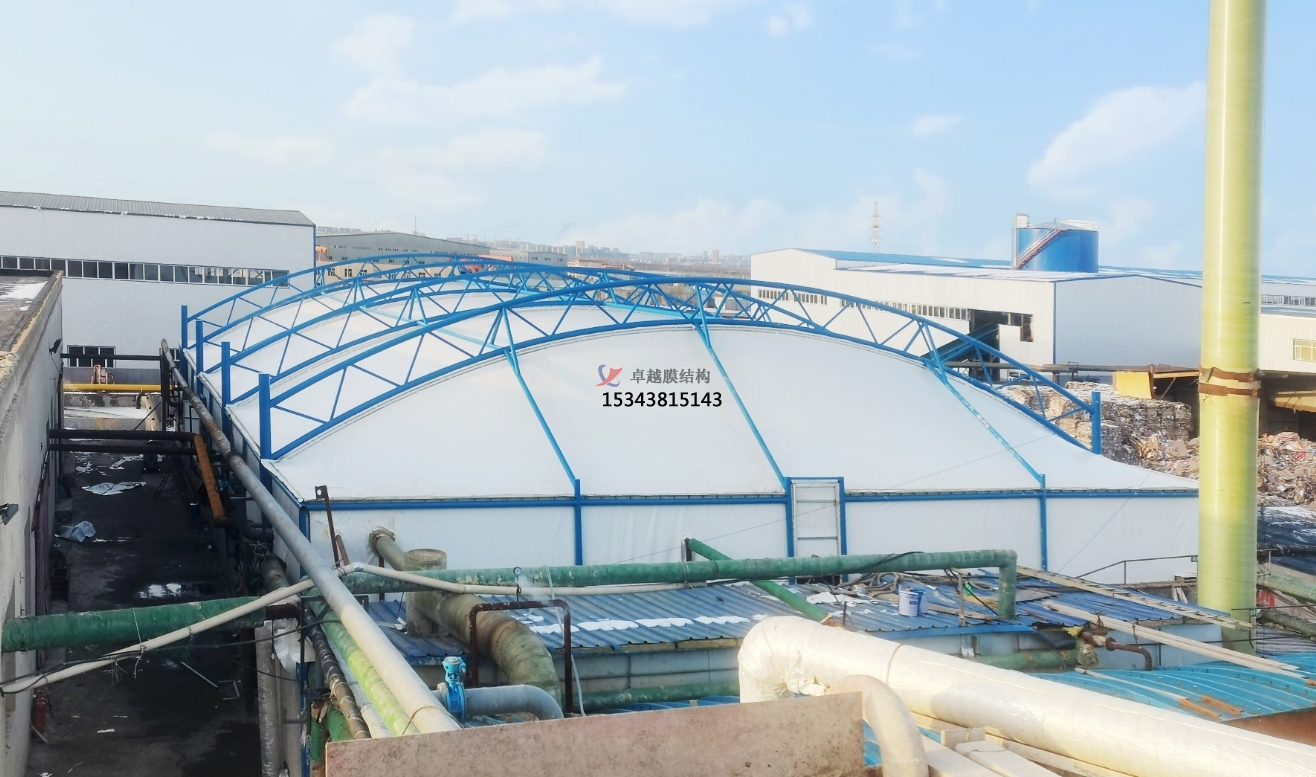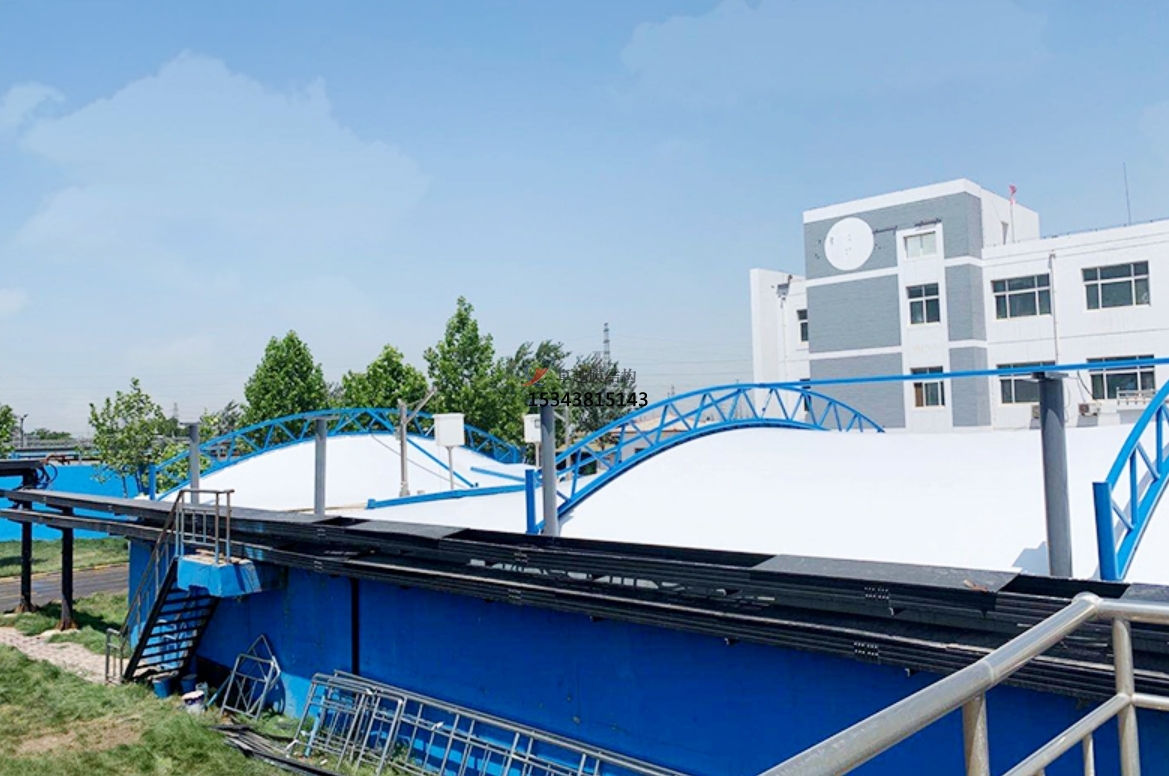 污水池反吊膜技術(shù)是一種利用膜材反吊的原理,將鋼結(jié)構(gòu)在外將膜材懸吊,利用膜材的氣密性特點(diǎn),將廢氣密封在一個(gè)密閉的空間,進(jìn)而將凈化后的廢氣排出池外,達(dá)到排放標(biāo)準(zhǔn)的技術(shù)。它采用以鋼構(gòu)為支撐,膜材反吊覆蓋的膜結(jié)構(gòu)形式,即抗腐蝕能力很強(qiáng)的新型環(huán)保膜材將廢氣量住,而鋼結(jié)構(gòu)則在外面將膜懸吊起來。