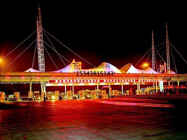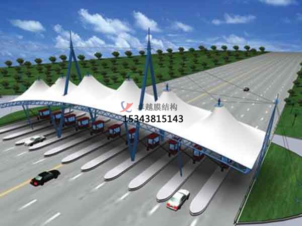 一、造型獨(dú)特,辨識度高,由于膜材重量輕,適合收費(fèi)站這種大跨度的建筑,而且是采用張力結(jié)構(gòu)所以在造型設(shè)計上具有很大的優(yōu)勢,可以實現(xiàn)非常具有藝術(shù)氣息的造型。