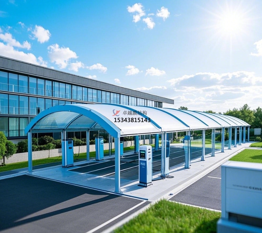 ??????? 膜結(jié)構(gòu)罩棚的大跨度特性,為充電站供給了開闊、無柱的內(nèi)部空間。這使得充電設(shè)備可根據(jù)需求靈敏布局,無論是常見的壁掛式充電樁,仍是大型的快充設(shè)備,都能輕松安置,且為車輛停放與充電操作預(yù)留出充足空間。一起,膜結(jié)構(gòu)罩棚可根據(jù)場(chǎng)所實(shí)際情況,靈敏調(diào)整空間大小與形狀,無論是規(guī)矩的矩形場(chǎng)所,仍是不規(guī)矩的異形場(chǎng)所,都能實(shí)現(xiàn)完美適配,提高土地利用率。