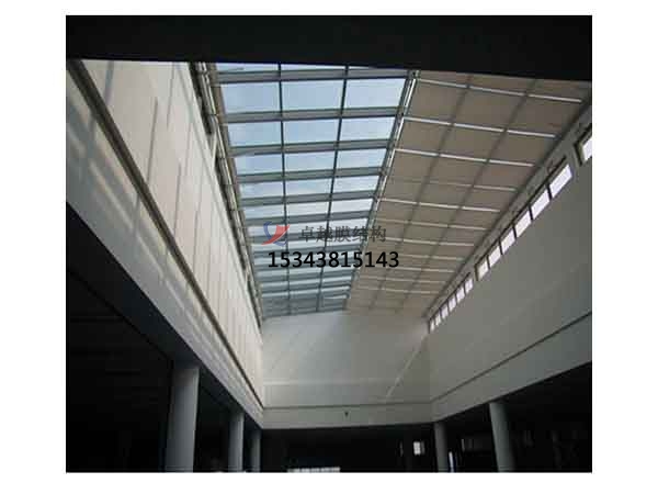 膜結(jié)構(gòu)車(chē)棚膜結(jié)構(gòu)所用的膜材料為具有、阻燃、耐久、自潔等特性的復(fù)合材料,一般由基布和涂層二部分組成?;贾饕捎镁壑w維或玻璃纖維絲編織而成,有平織和絞等多種編織方法,不同的膜結(jié)構(gòu)車(chē)蓬編織方法影響著膜材料的經(jīng)緯向力學(xué)性能指標(biāo),膜的抗拉強(qiáng)度和抗撕裂強(qiáng)度等;涂層材料主要有聚四氟乙烯和聚氯乙烯,在一定程度上提高了膜材料各項(xiàng)強(qiáng)度指標(biāo),為提高膜材料的耐久、自潔等特性,表面往往有一層氟涂層或硅涂層,膜材料的耐火、耐久及防水、自潔等性能,決定著膜材料的物理特性。