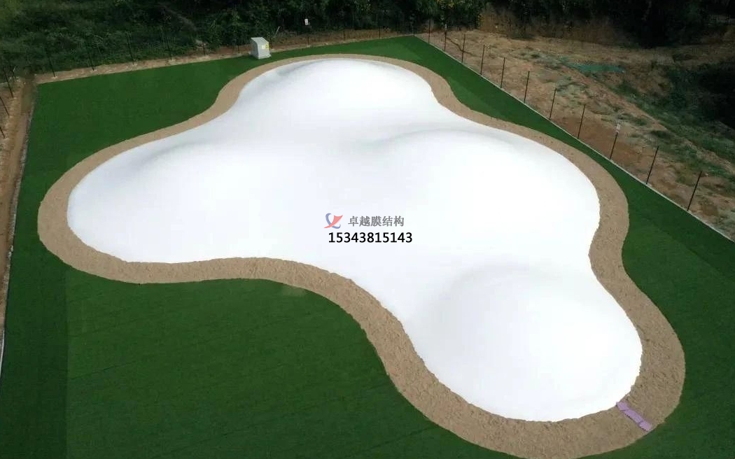 蹦蹦云是一種新型無動力兒童游樂設施。其外觀特點:蹦蹦云外觀潔白如雪,形狀如同云朵一般,非常美觀,能吸引孩子們的注意力。它通常由外膜、內膜和氣模三部分組成,材質柔軟且具有一定的彈性,能為孩子們提供安全的游樂環(huán)境。