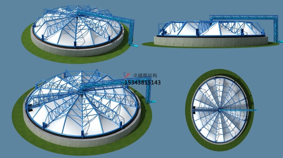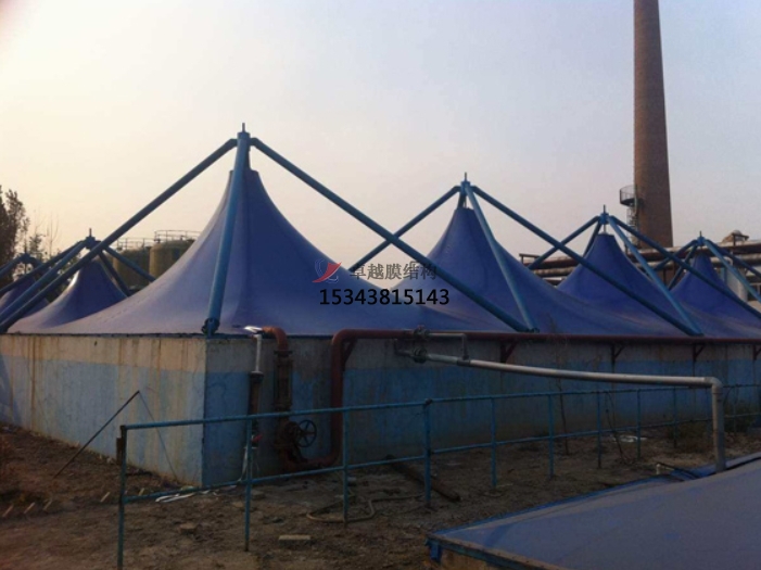 由于膜材自重輕,而抗拉強度很大膜結構可以從根本上克服傳統(tǒng)結構在大跨度(中間無支撐)建筑上實現(xiàn)所遇到的困難,適于大跨度的池體。