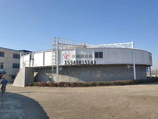 污水池膜結(jié)構(gòu)核心優(yōu)勢主要有耐腐蝕長效性,密封與環(huán)保性能,結(jié)構(gòu)適應(yīng)性。其技術(shù)原理是膜材(如PVDF、PTFE)直接接觸池內(nèi)硫化氫、氨氣等腐蝕性氣體,抗化學(xué)腐蝕性能優(yōu)異,壽命達(dá)20年以上;鋼結(jié)構(gòu)外置反吊于膜上,徹底規(guī)避腐蝕風(fēng)險(xiǎn),降低維護(hù)頻率。如PTFE膜材在強(qiáng)酸環(huán)境下仍保持穩(wěn)定性,而傳統(tǒng)碳鋼蓋板2-3年即需更換。污水池膜結(jié)構(gòu)具有優(yōu)異的封閉性,膜材柔性貼合池體,焊縫無隙,惡臭氣體逸散率降低80%以上;膜材透光率可控(如ETFE透光率95%),減少照明能耗;保溫特性降低池內(nèi)溫度波動(dòng),減少曝氣能耗;膜結(jié)構(gòu)支持超大跨度(超100米)無柱設(shè)計(jì),覆蓋不規(guī)則池體(如圓形、異形池);自重僅為傳統(tǒng)材料的1/10,減輕池體荷載壓力。
